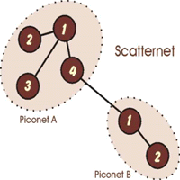 kommunizieren. Ein Piconetz bildet ein Master, der mit bis zu 7 Slaves