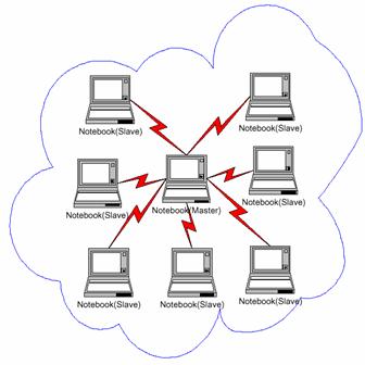 die als Slaves arbeiten. Der Master wird dabei als GN (Group Ad-hoc Network)